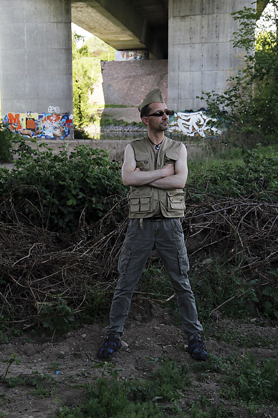 STEFAN nun in anderen Klamotten an der A5 im Westen von Heidelberg.