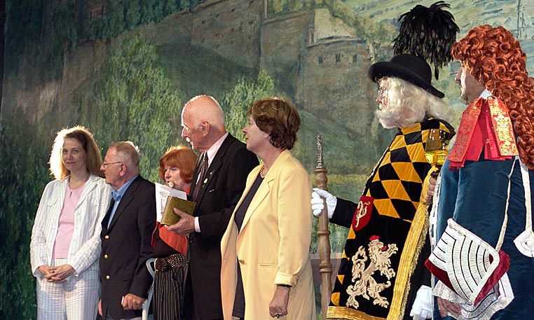 Zu dem Festakt ins Theater kamen etliche Weggefährten Stoltzenbergs. Das Wiedersehen und die Wiedererkennungszeremonien waren dementsprechend herzlich. Ruth Ziesak, die inzwischen Weltkarriere macht, wurde vom Publikum herzlich gefeiert. |